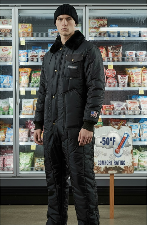 Freezer Wear Insulated Coveralls without hood. Total protection. The perfect choice for dairy and frozen food processing plants, meat and poultry lockers.