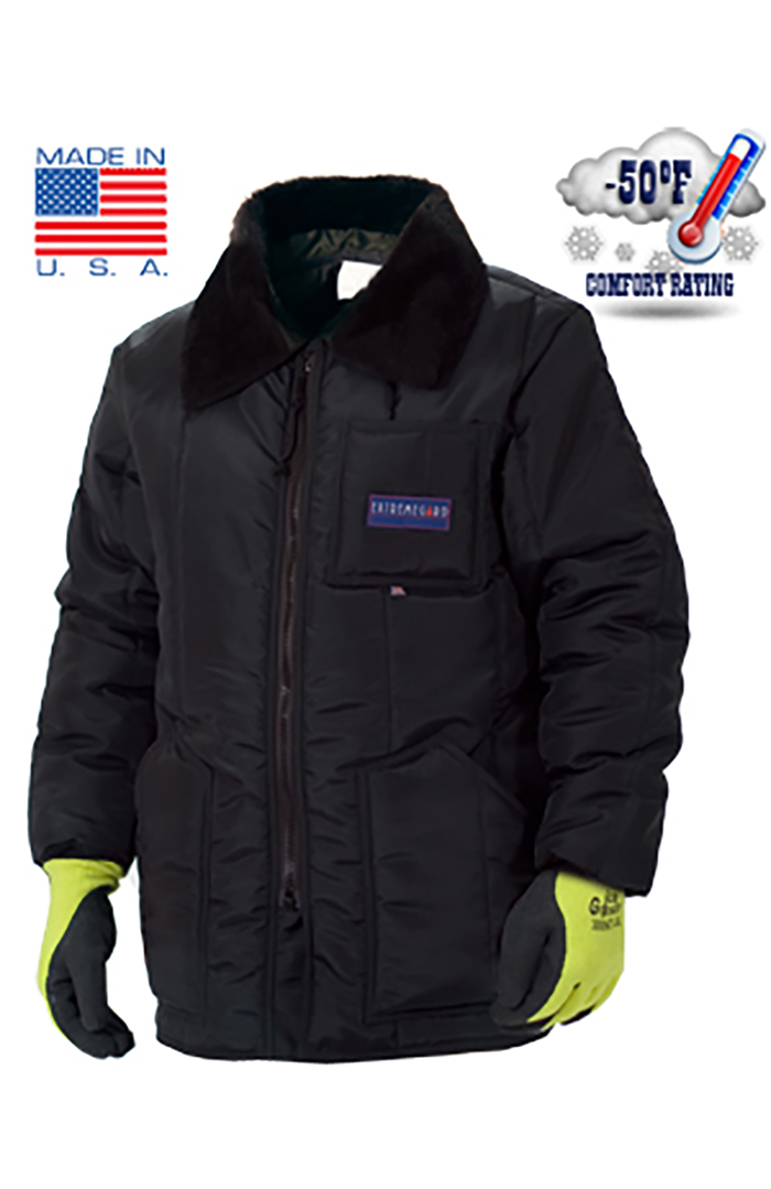 Freezer Wear Insulated Work Jacket designed for Comfort and Protection. Extends to mid-thight in length.