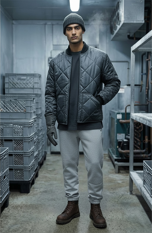 One of our most popular cooler wear jackets. Diamond Quilted. Blue Color. Ideal for meat, dairy, flower processing plants.