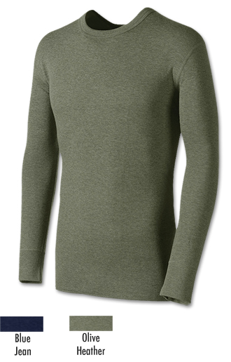 Description: 6.3 ounce mid weight two-layer thremal for exceptional warmth during ver cold weather. Cotton inner layer for next-to-skin softness. Natural performance of Merino wool. Flatlock seams to help avoid irritation. NEW TAGLESS